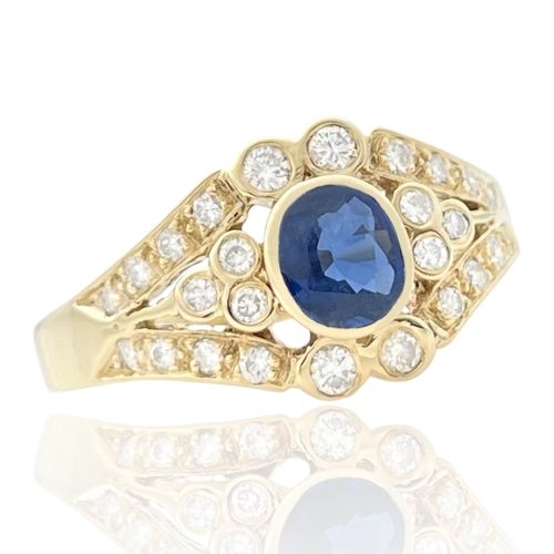 Gelbgold Brillant Ring mit ein Saphir - ca. 0.72ct Brillanten und Sapphire