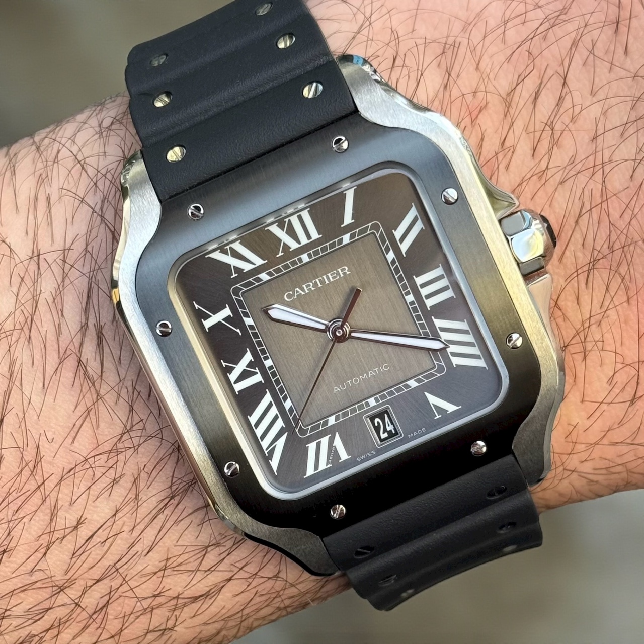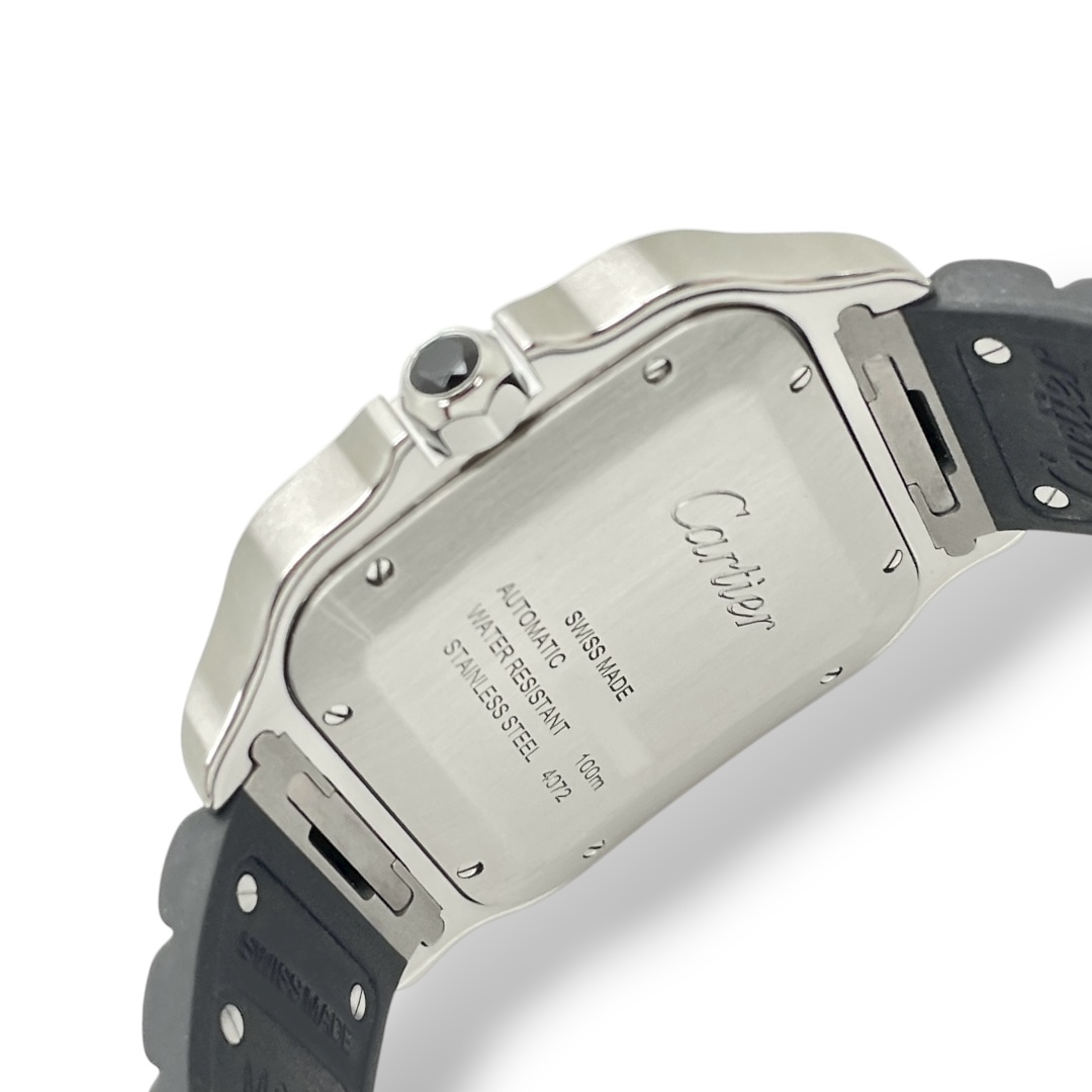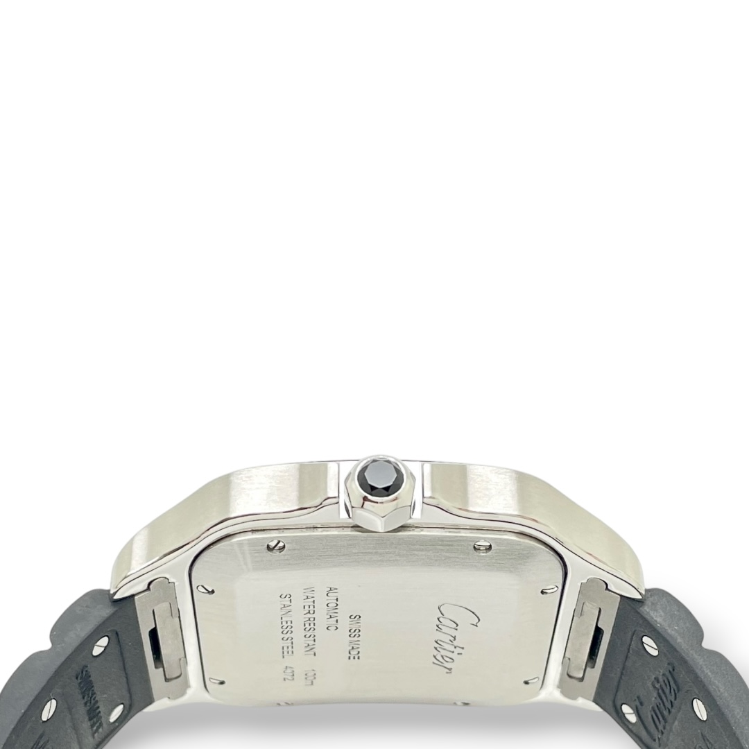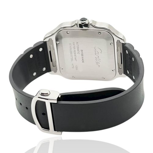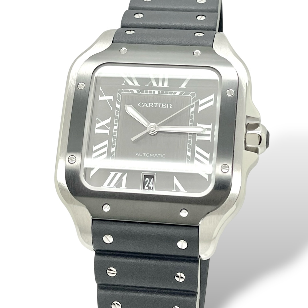 Santos De Cartier Großes Modell Rhodium Graues Blatt Kautschukband