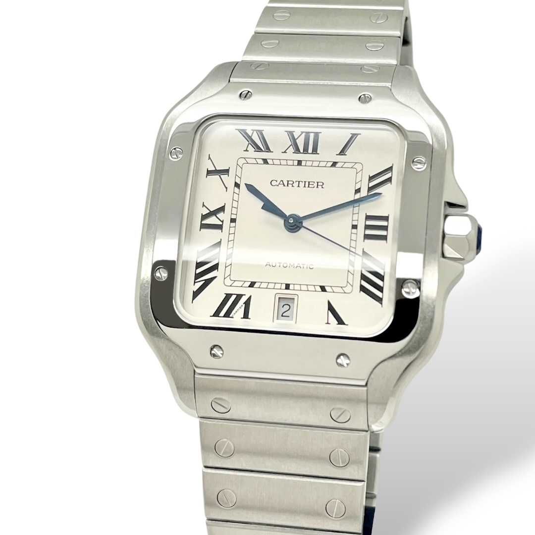 Santos De Cartier Großes Modell LM Datum Silbernes Blatt