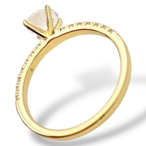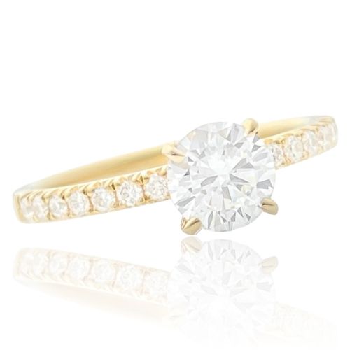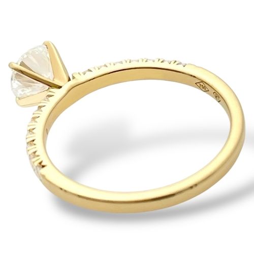 Solitaire Ring Gelbgold Brillant Pave - 0.72ct Diamant HRD Zertifikat