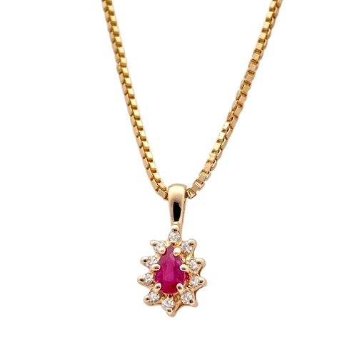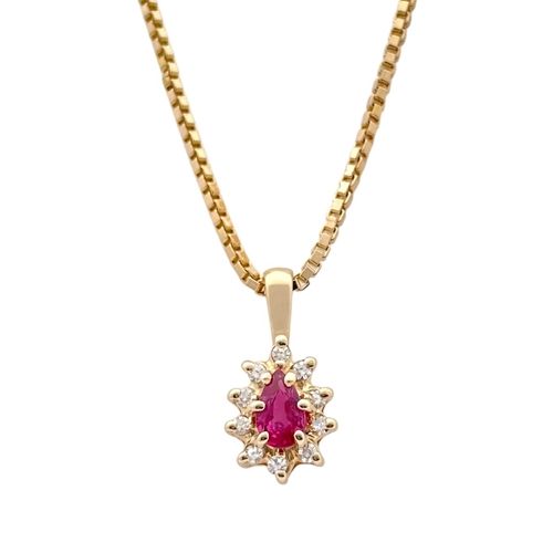 Tropfen Halskette mit Anhänger Rubin & Brillanten - ca. 0.24ct Rubin & Brillanten
